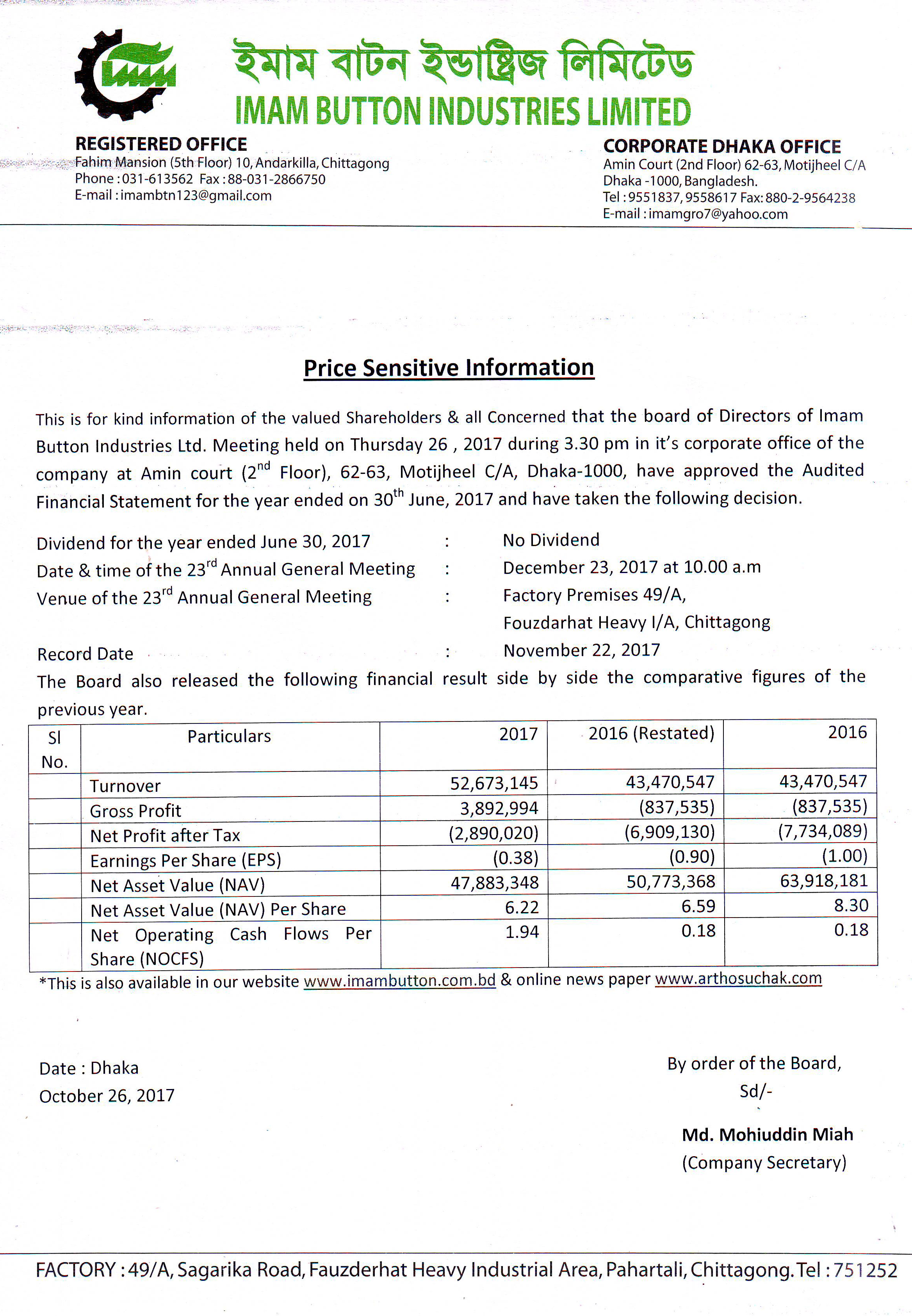 Q2 Financial Statements (Un-audited) of Imam Button Industries Ltd.