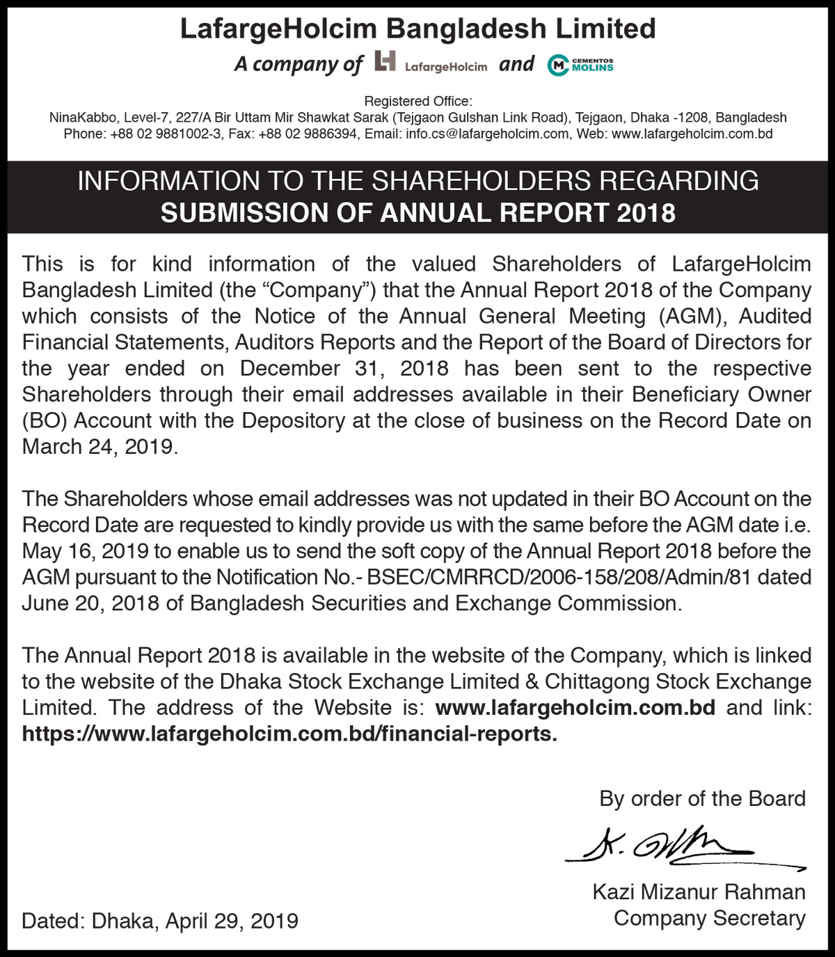 Information to the Shareholders Regarding Submission of Annual Reports 2023 of LafargeHolcim Bangladesh Limited
