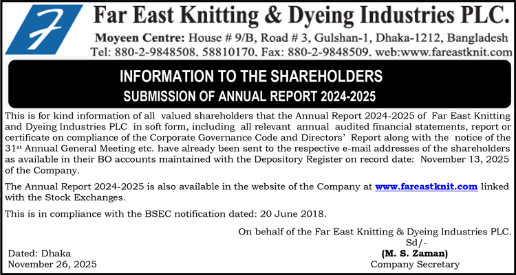 Price Sensitive Information of Far East Knitting & Dyeing Industries Limited