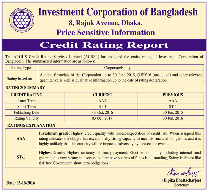 Price Sensitive Information of Investment Corporation of Bangladesh (ICB)