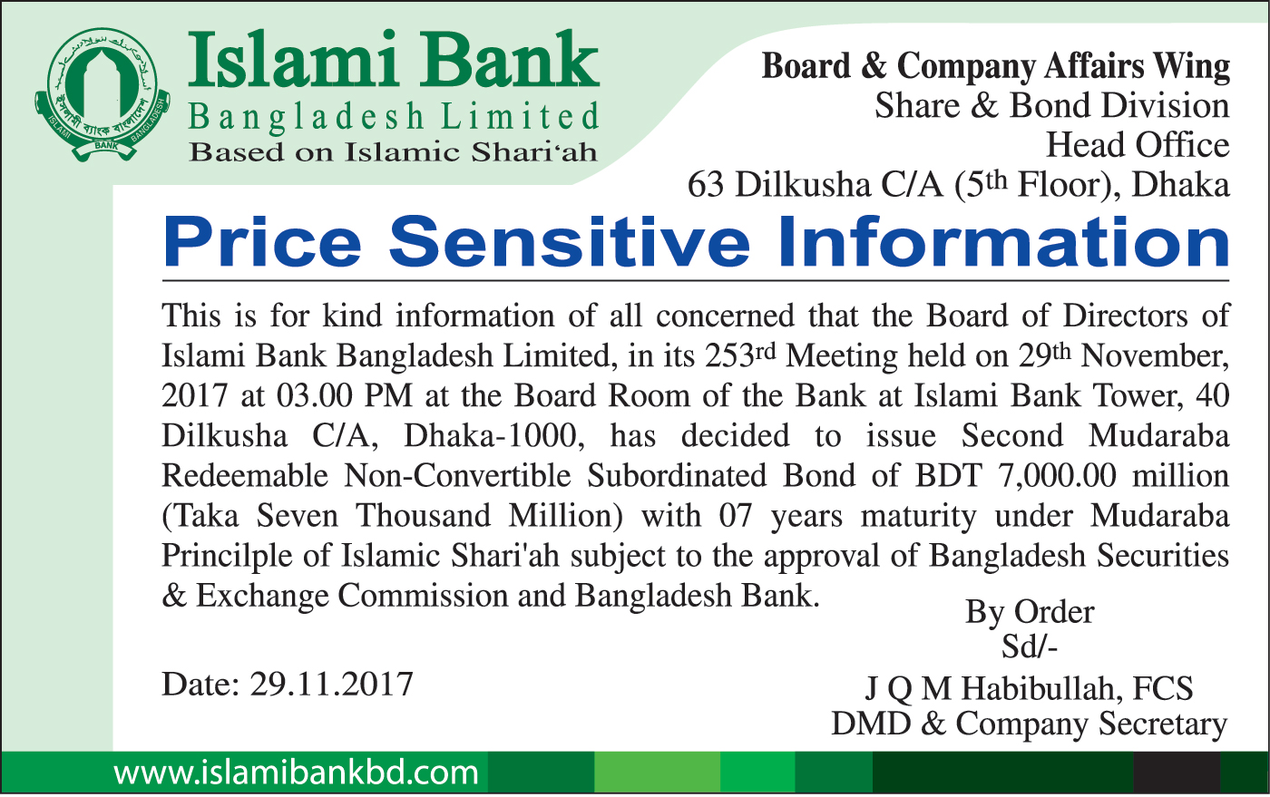 Islami Bank Bangladesh Ltd. Price Sensitive Information