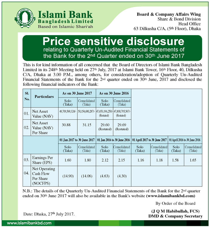Q1 Financial Statements (Un-audited) of Islami Bank