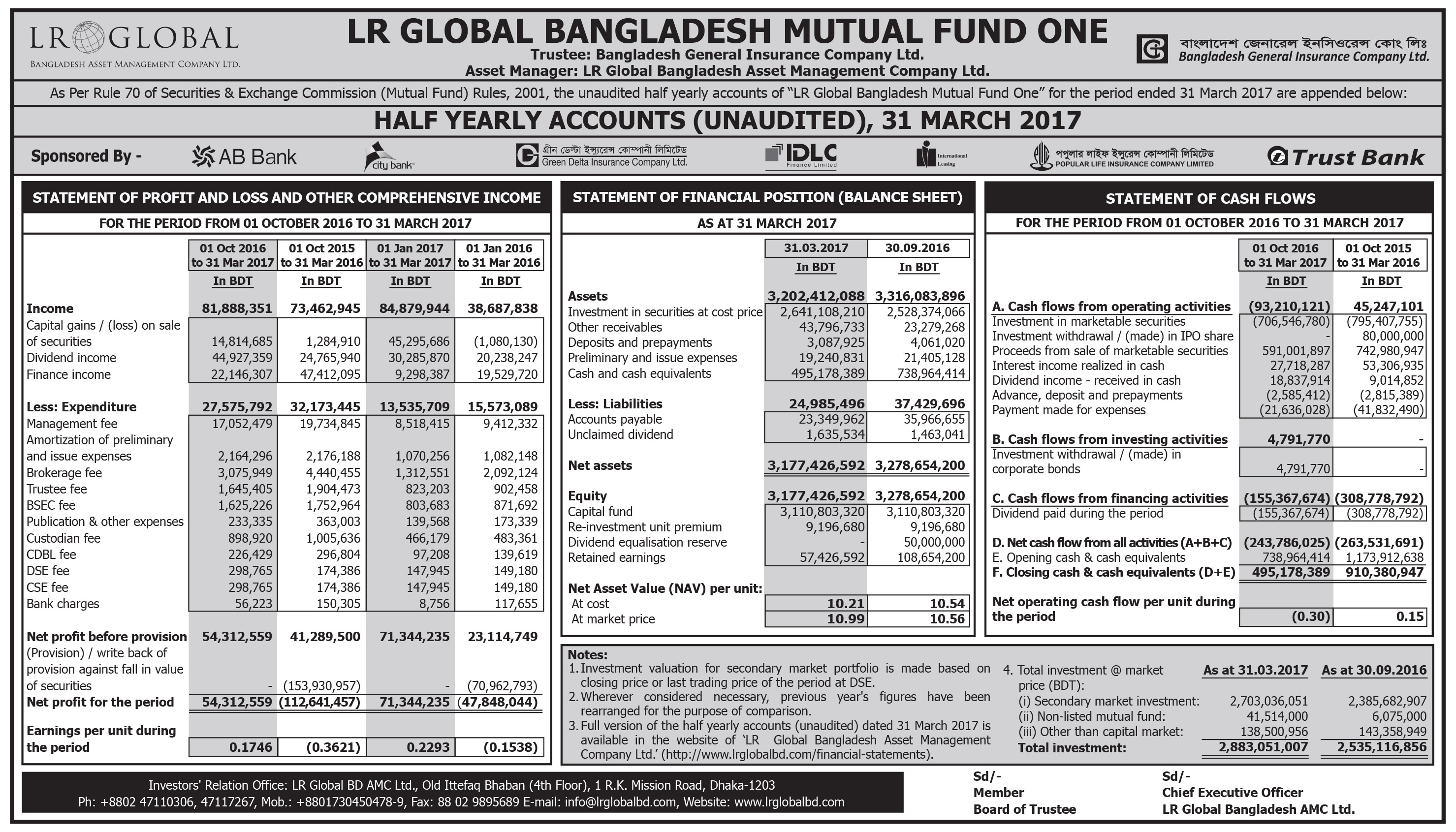 LR Global Bangladesh Mutual Fund One Half Yearly Accounts, 31 March 2017