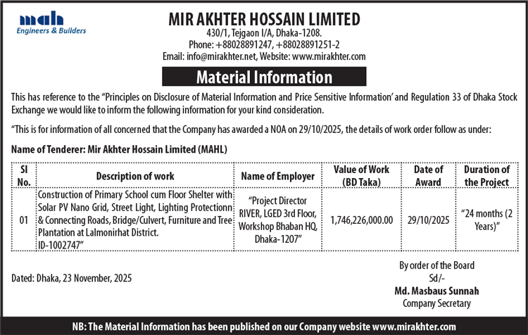 Price Sensitive Information of Mir Akhter Hossain Ltd.