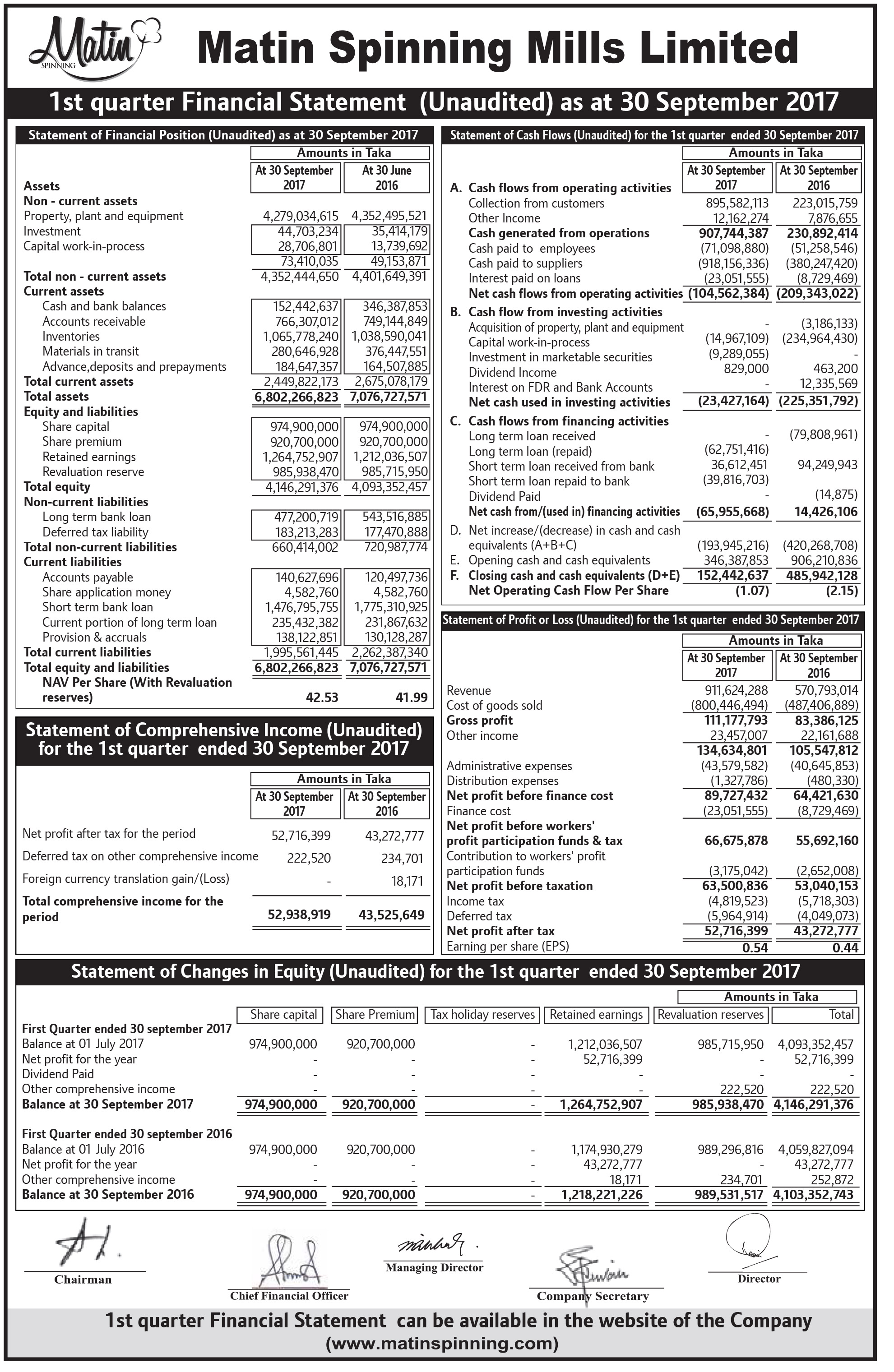 Un-audited Financial Statements of Matin Spinning Mills PLC