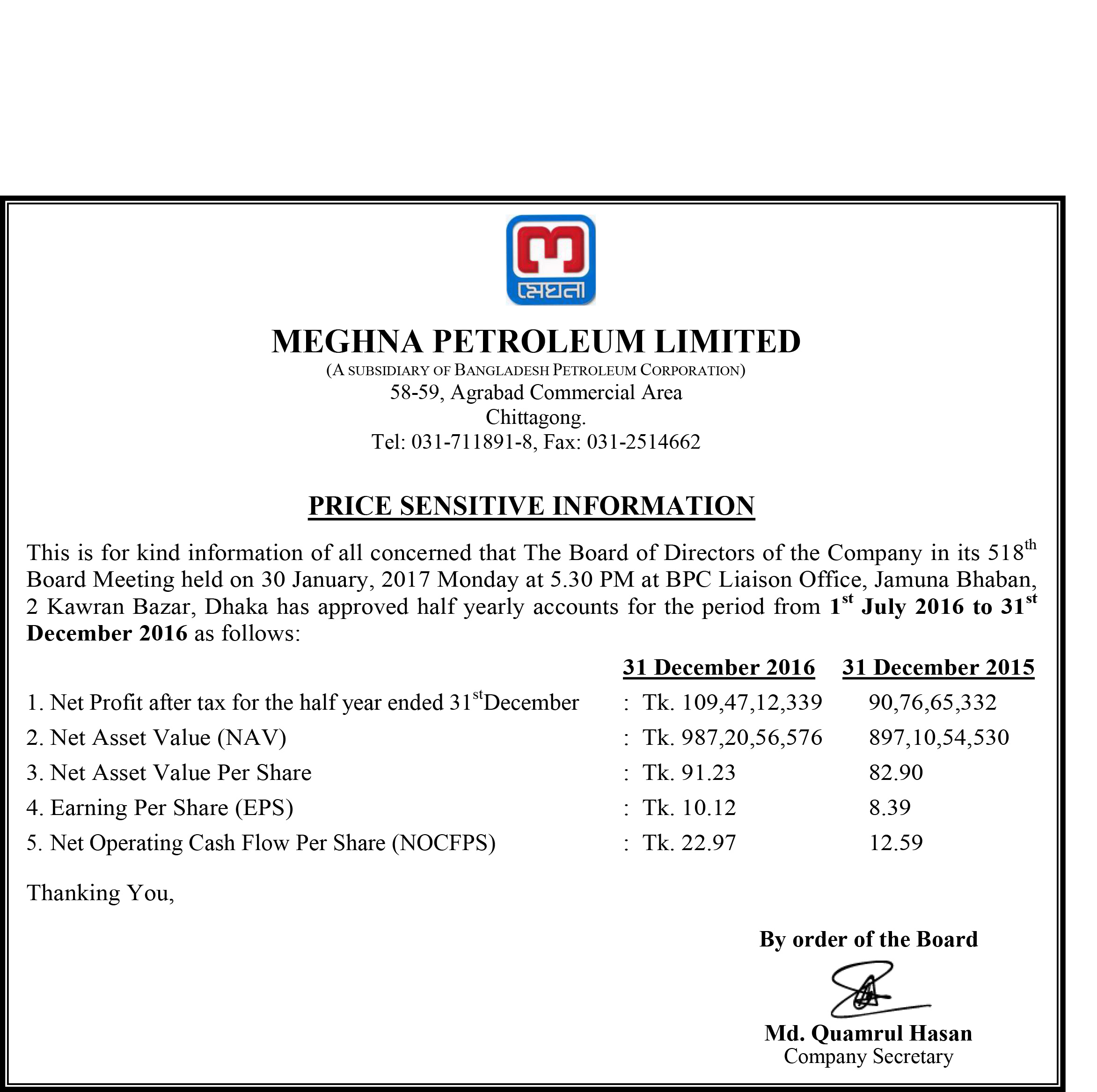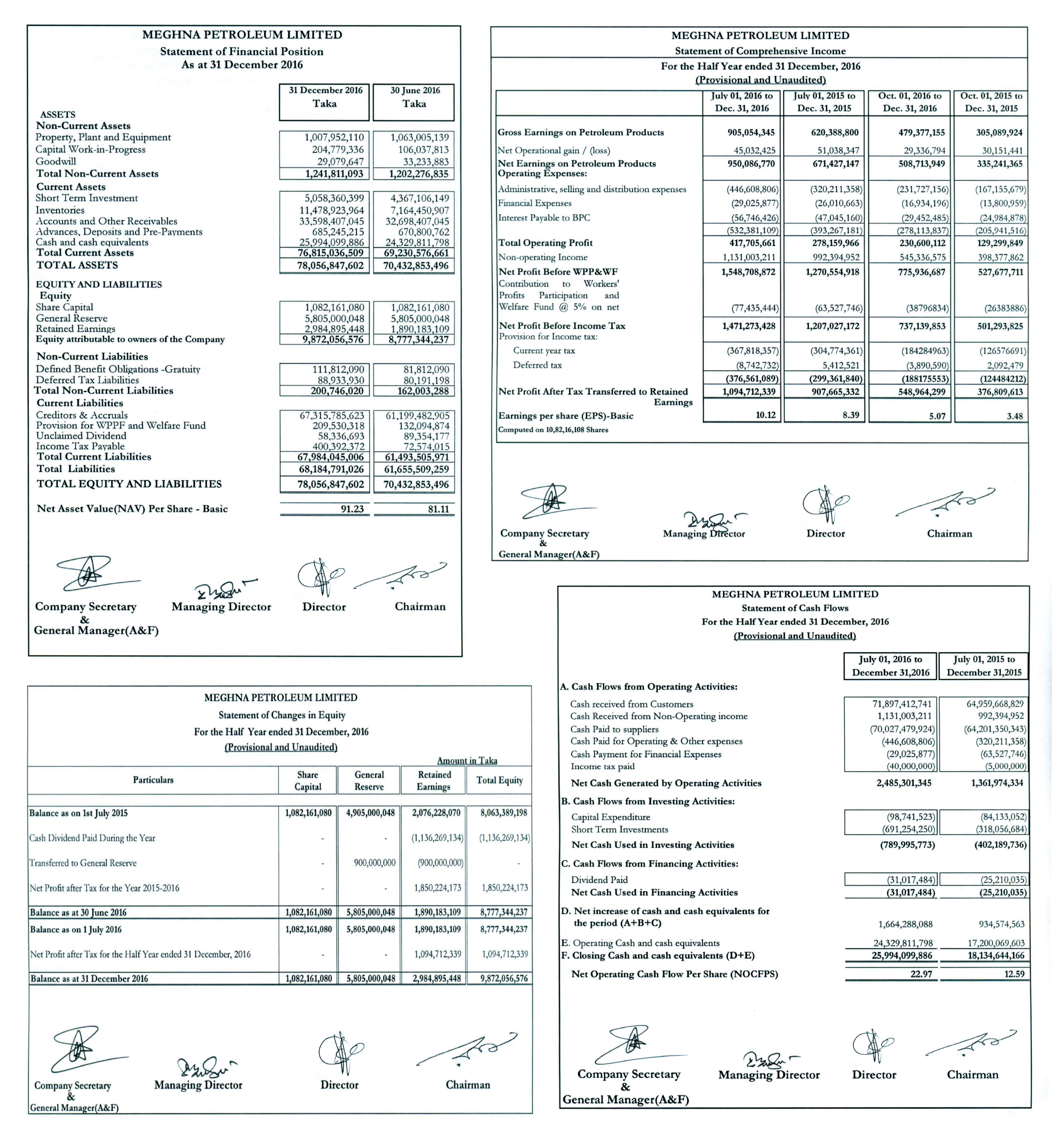 Half Yearly Financial Statements of Meghna Petroleum Limited