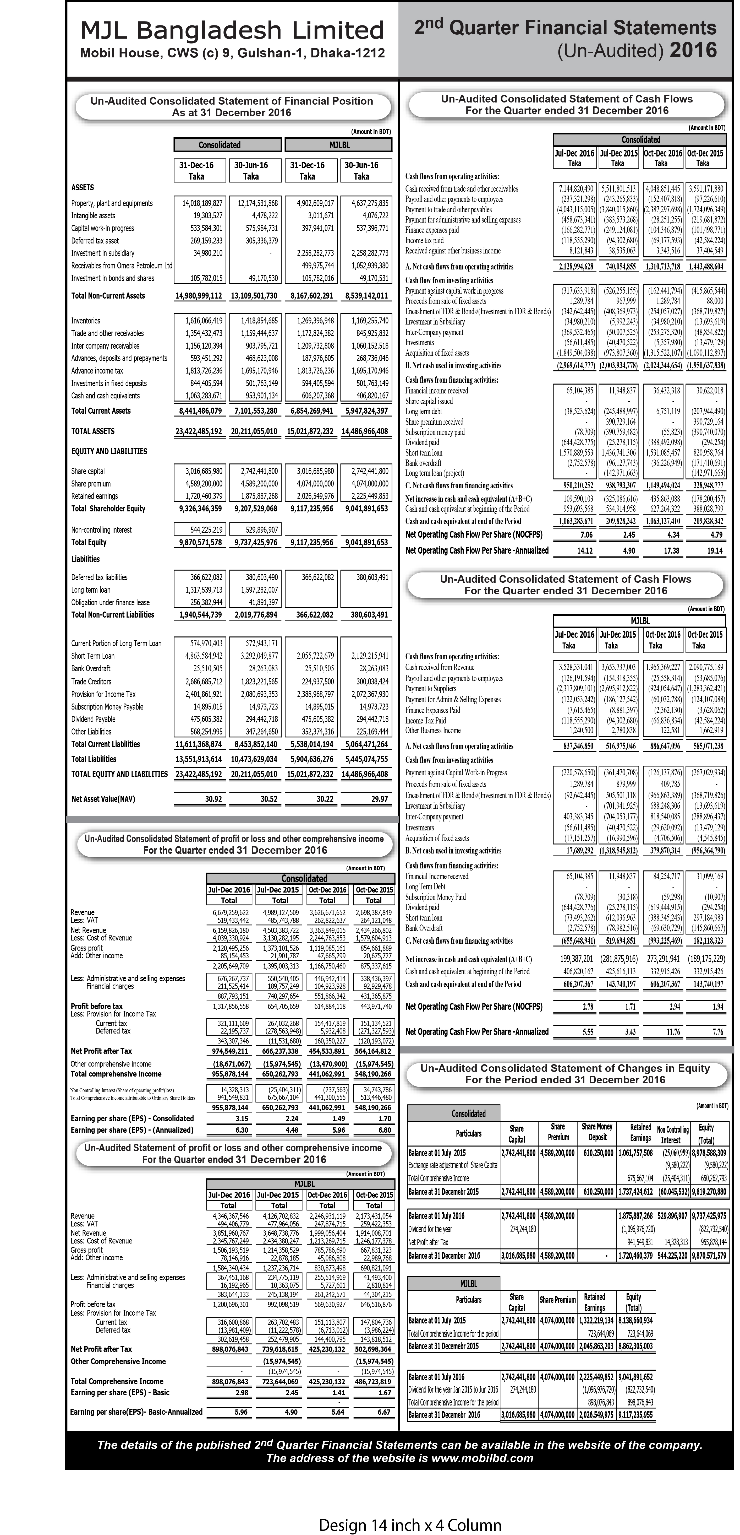 Q2 Financial Statements (Un-audited) of MJL Bangladesh Limited
