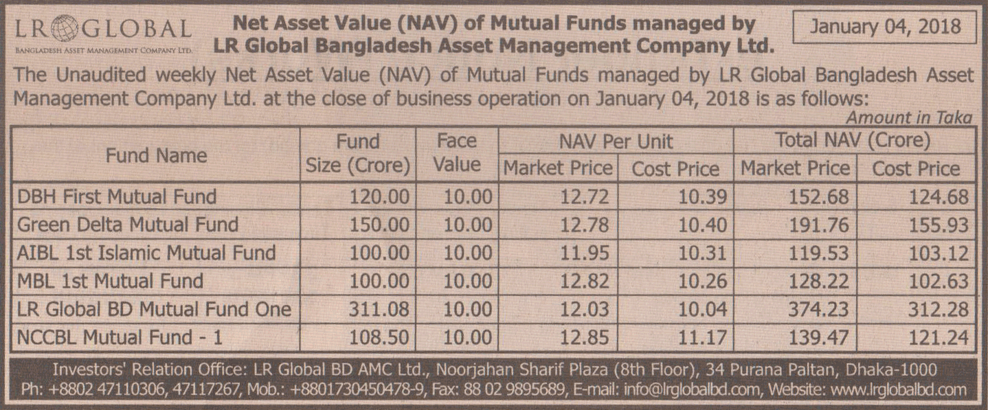 Net Asset Value of Mutual Fund Managed by LR Global Bangladesh Asset Management Company Ltd.