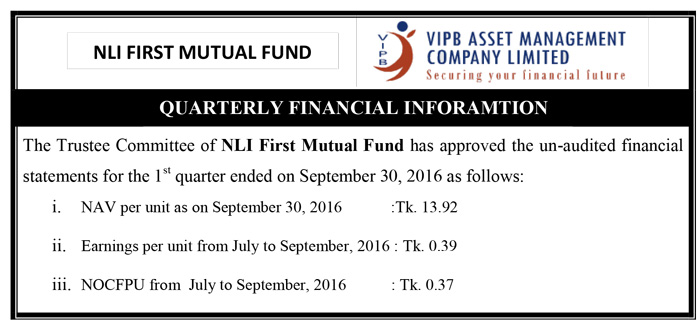 NLI First Mutual Fund 2Q Price Sensitive Information 2016