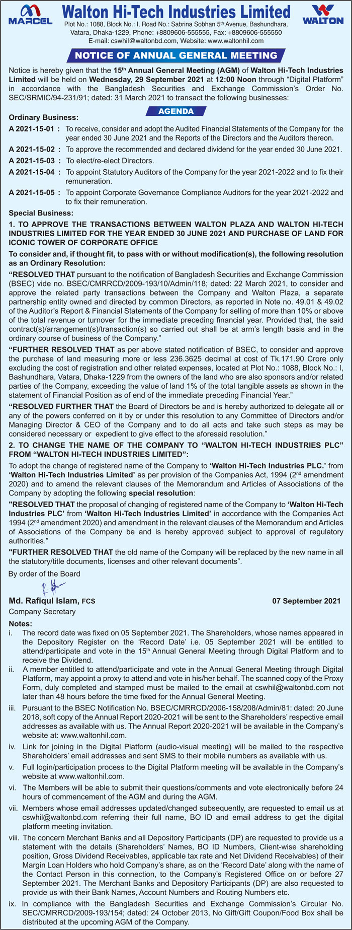 Notice of Annual General Meeiting of Walton Hi-Tech Industries Ltd.