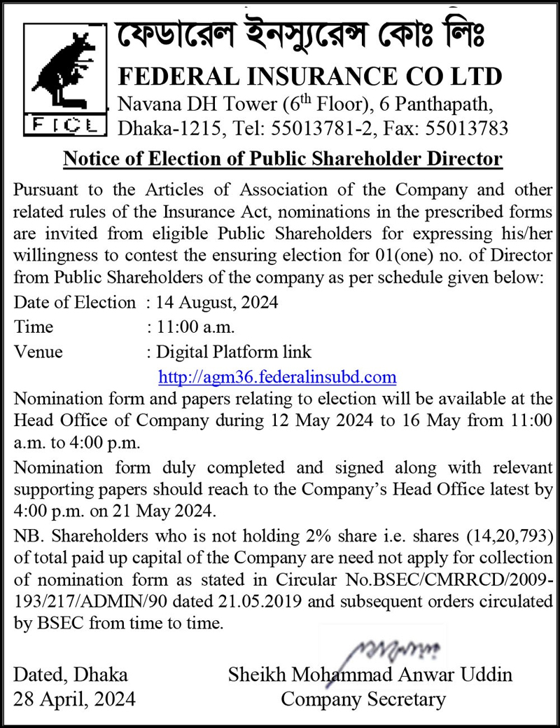 Notice of Election of Public Shareholder Director of Federal Insurance Company Limited