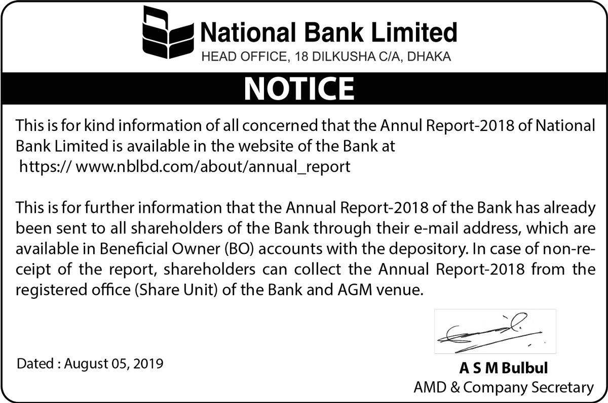 Distribution of Bonus Shares- 2018 of National Bank Limited