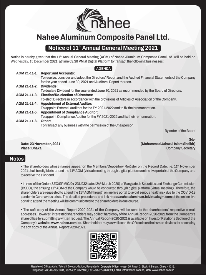 Notice of the 11th AGM of Nahee Aluminum Composite Panel Ltd