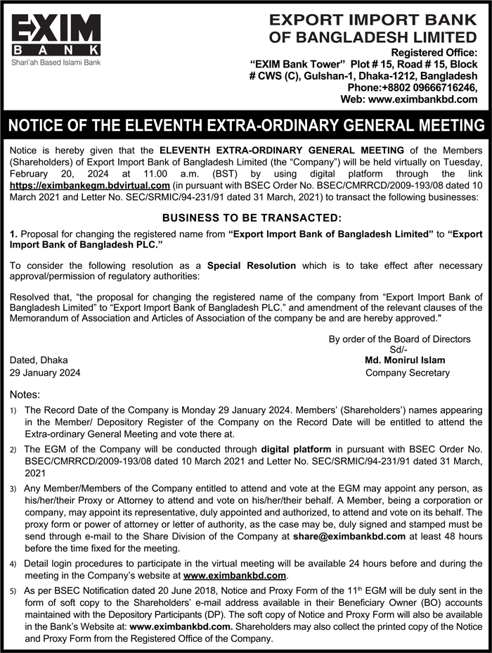 Half Yearly Un-audited Financial Statements of EXIM Bank