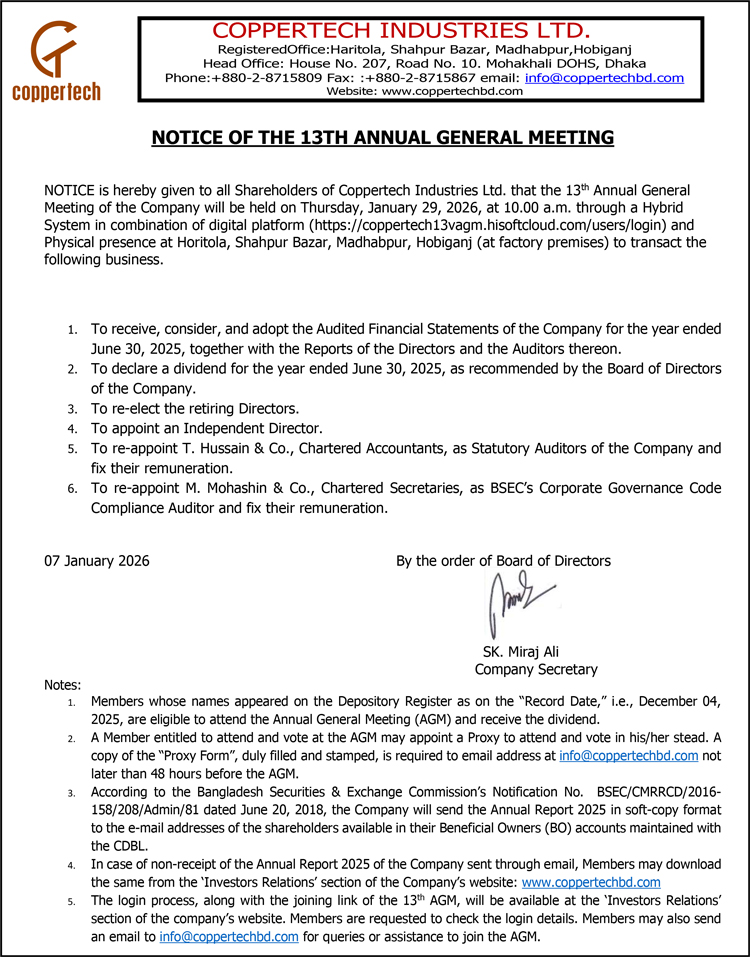 Disclosure of Price Sensitive Information of Coppertech Industries Limited