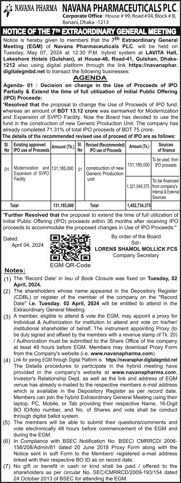 Notice of the 7th EGM of Navana Pharmaceuticals PLC