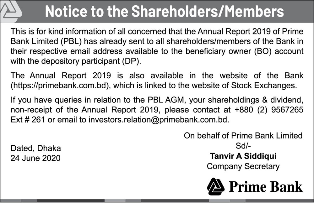 Notice of the 29th AGM of Prime Bank
