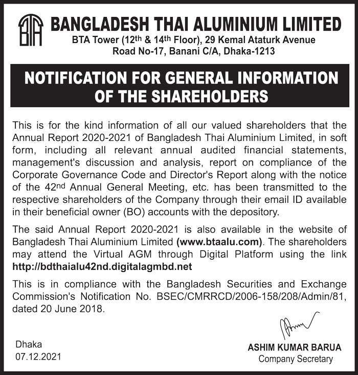 Notification for General Information of the Shareholders of Bangladesh Thai Aluminium Ltd.