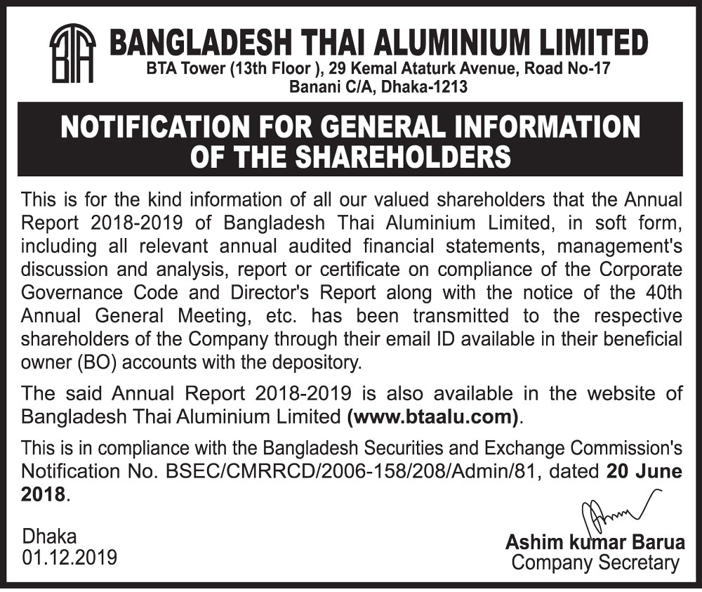 Notification for General Information of the Shareholders of Bangladesh Thai Aluminium