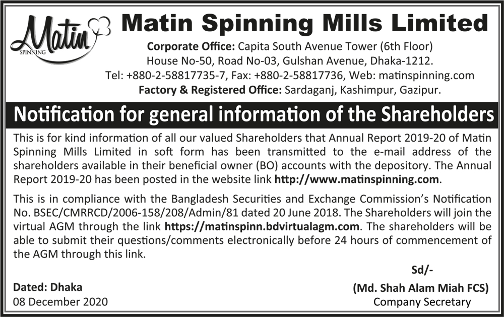 Notification for General Information of the Shareholders of Matin Spinning Mills Ltd
