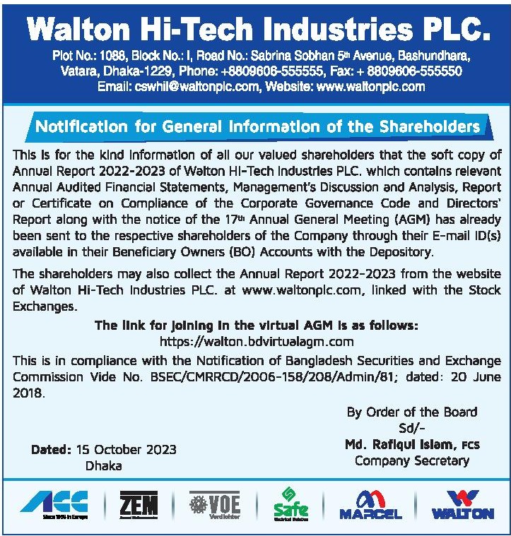 Notification for General Information of the Shareholders of Walton Hi-Tech Industries PLC