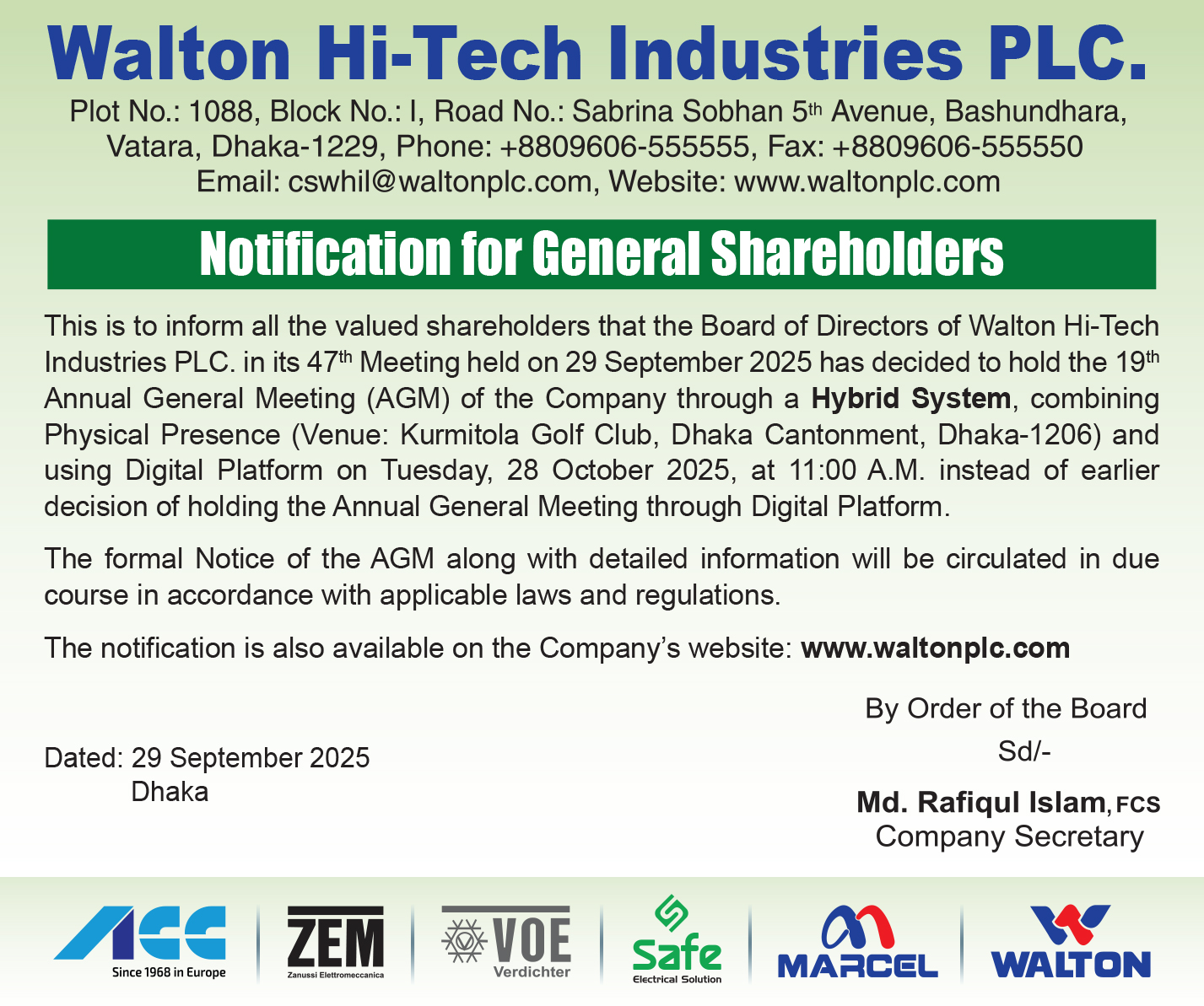 Notification for General Shareholders of Walton Hi-Tech Industries PLC.