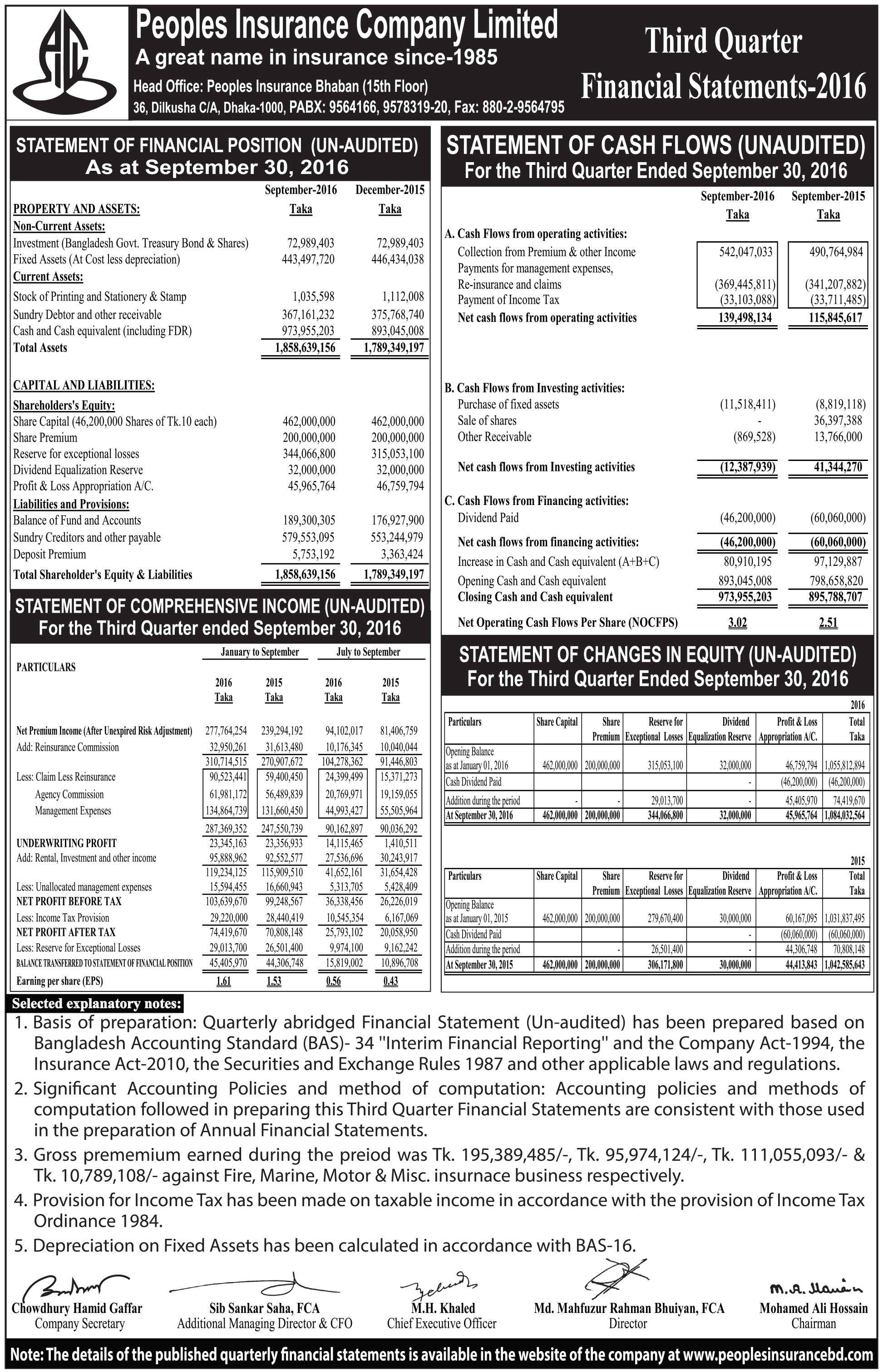 Q3 Un-audited Financial Statements of Peoples Insurance Company Limited