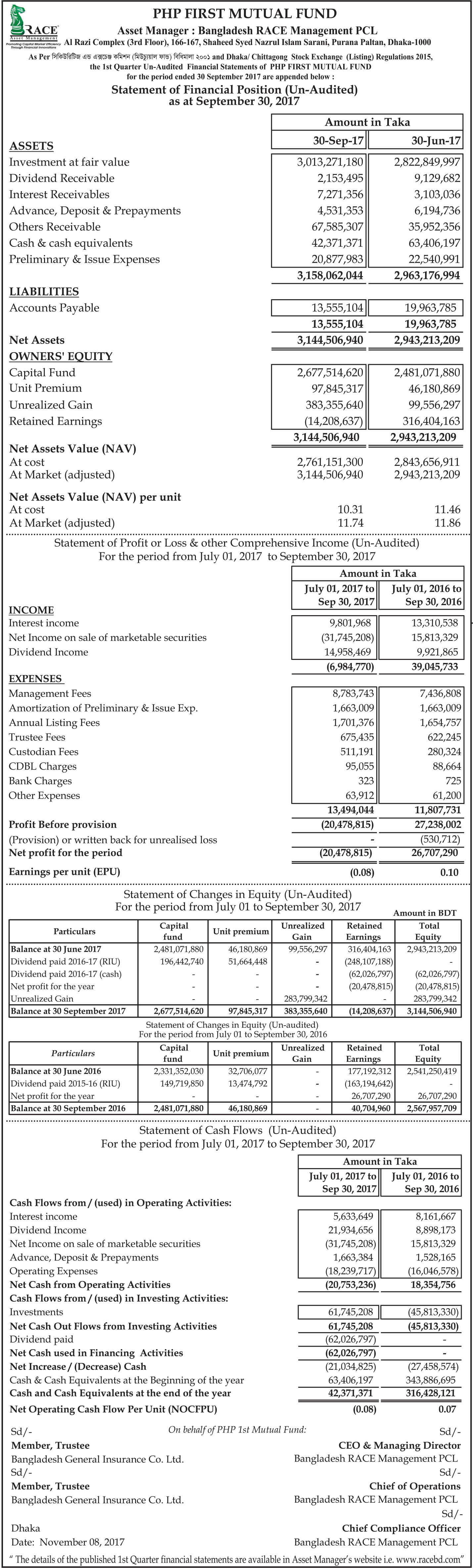 Un-audited Statements of Financial Position of PHP First Mutual Fund