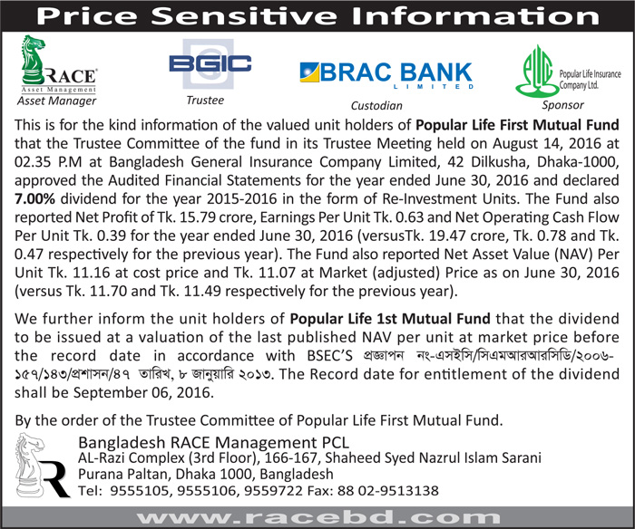 Price Sensitive Information of Popular Life First Mutual Fund