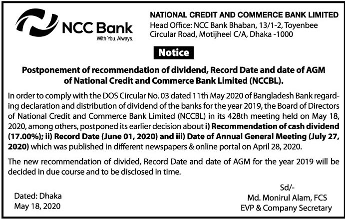 Price Sensitive Information Of NATIONAL CREDIT AND COMMERCE BANK LTD.