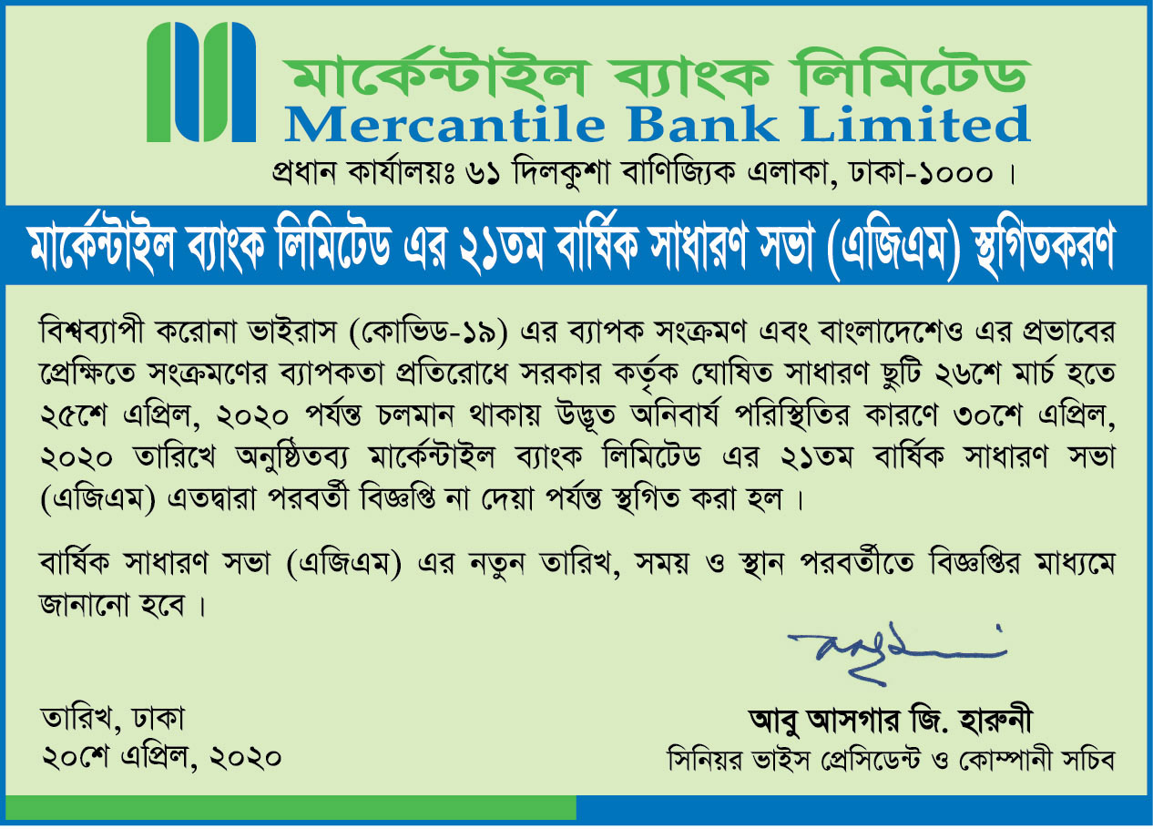 Notice of 25th AGM of Mercantile Bnak PLC.