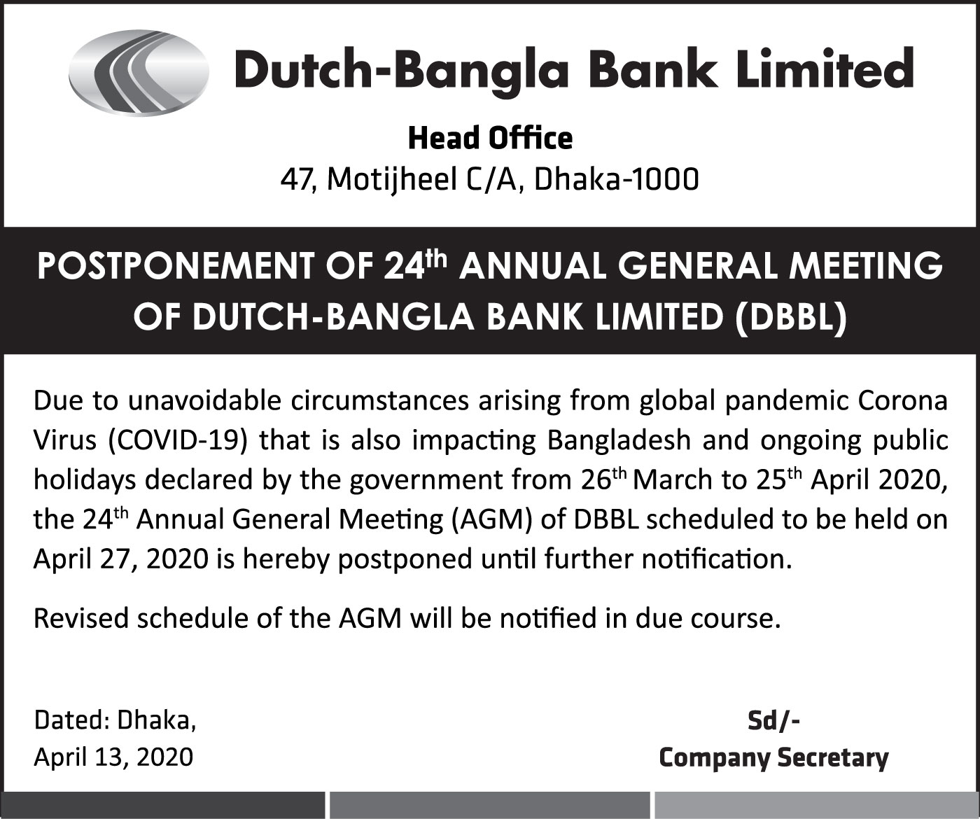 Postponement of 24th AGM of Dutch-Bangla Bank Ltd.