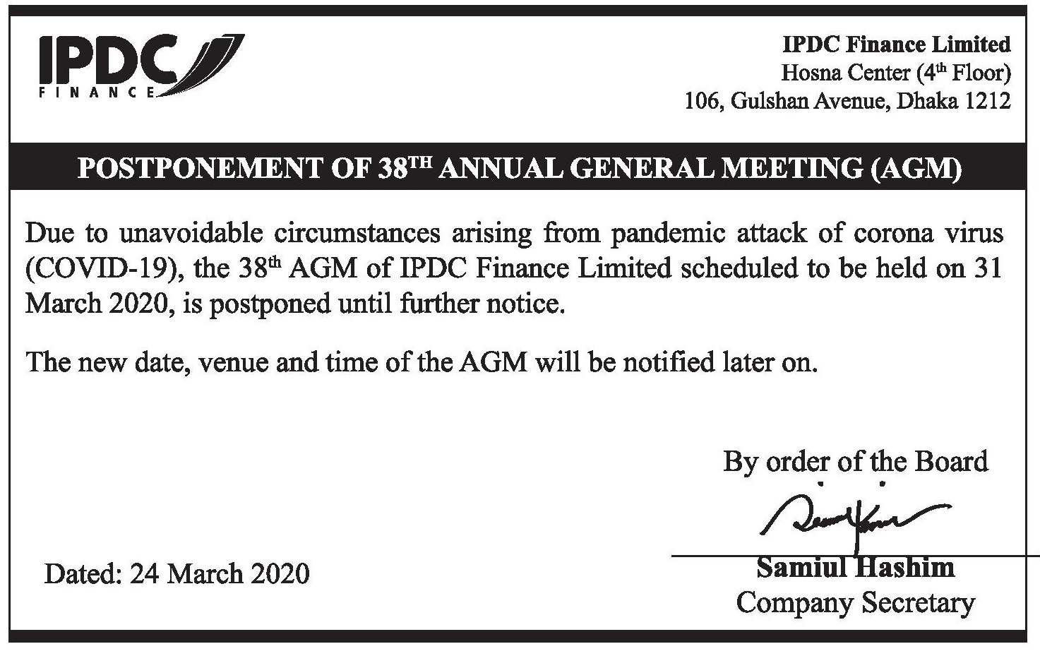 Postponement of 38th Annual General Meeting (AGM) of IPDC Finance Limited