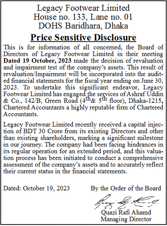 Price Sensitive Disclosure of Legacy Footwear Limited
