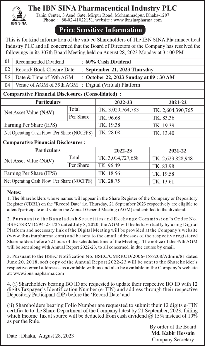 Price Sensitive Information of The IBN SINA Pharmaceutical Industry PLC