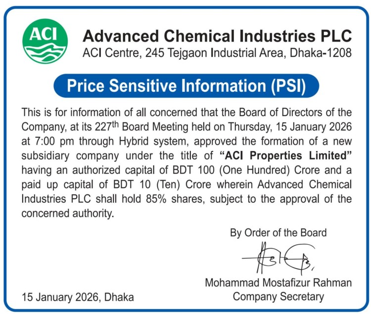 Price Sensitive Information ACI PLC ( ACI Properties Ltd.)