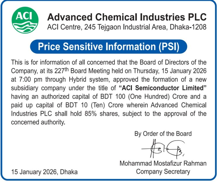 Price Sensitive Information (PSI) regarding Merger of Walton Digi-Tech Industries Ltd. (WDIL) with Walton Hi-Tech Industries PLC (WHIPLC).