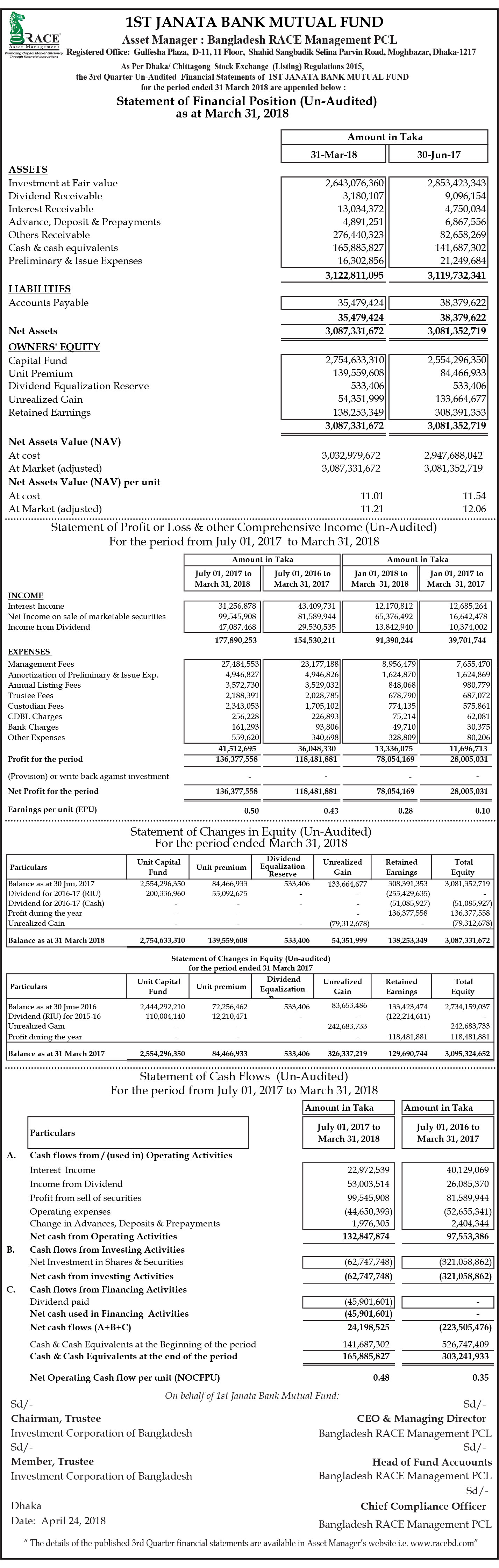 Statements of Financial Position (Un-audited) of First Janata Bank Mutual Fund