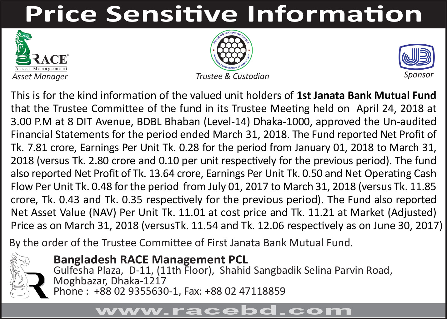 Price Sensitive Information of 1st Janata Bank Mutual Fund