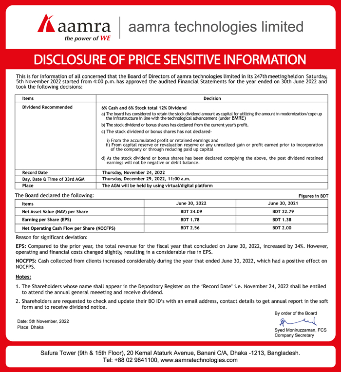 Un-audited Q2 Financial Statements of Aamra technologies limited