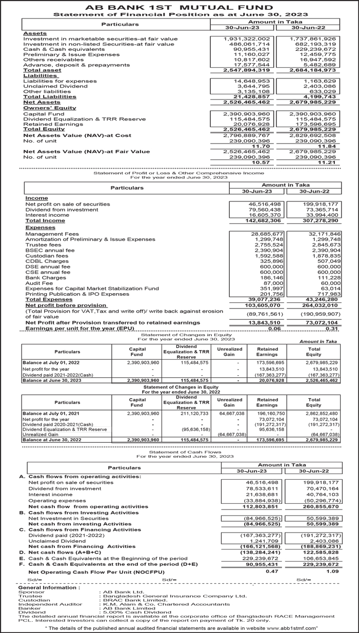 Price Sensitive Information of AB Bank 1st Mutual fund