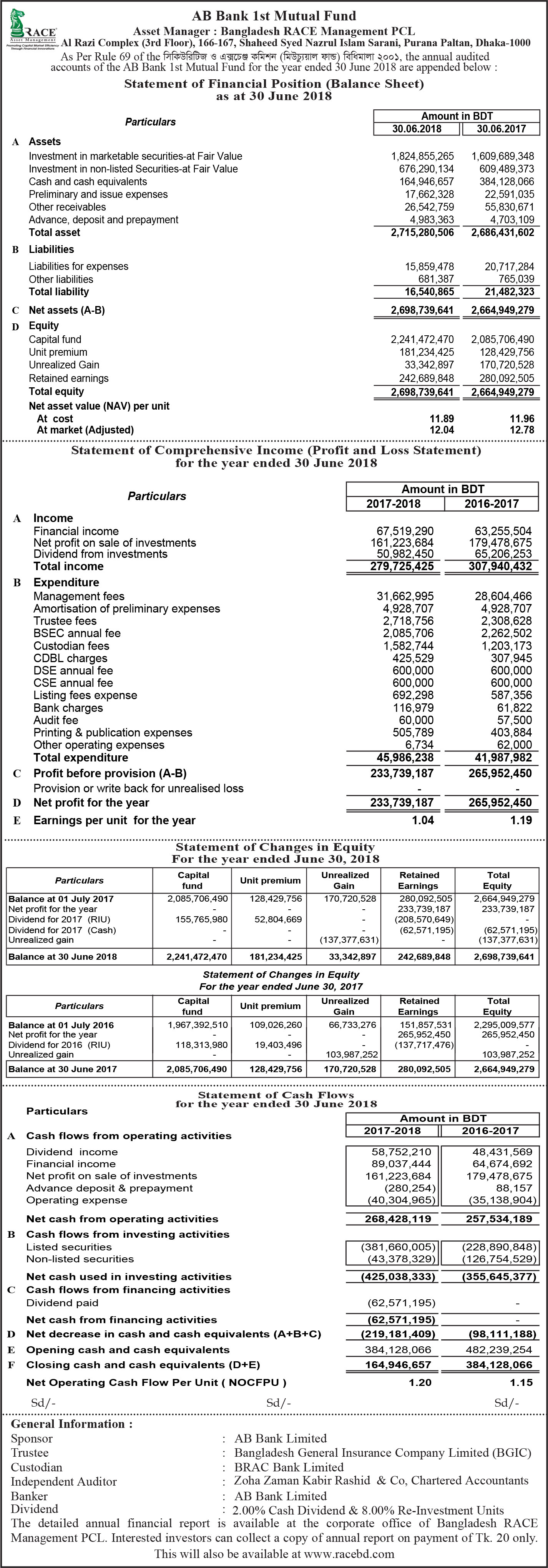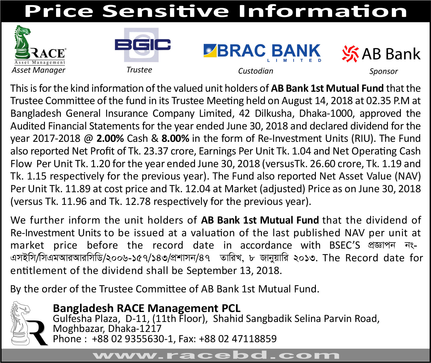 Price Sensitive Information of AB Bank 1st Mutual fund