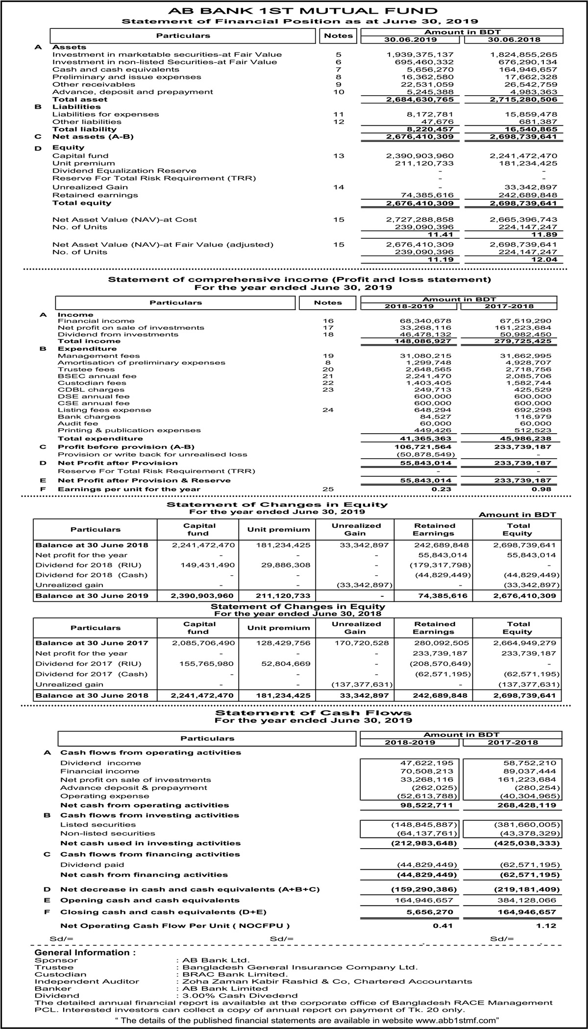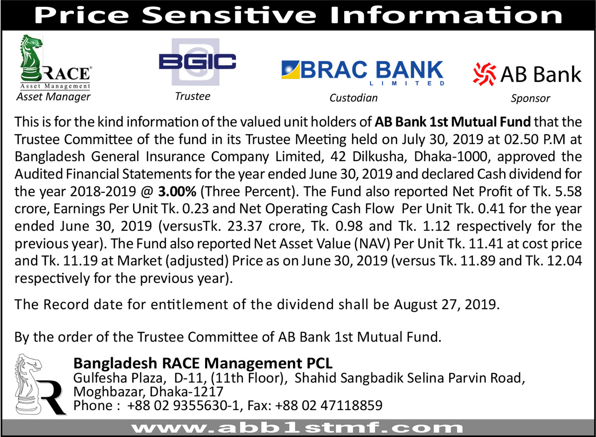 Price Sensitive Information of AB Bank 1st Mutual fund