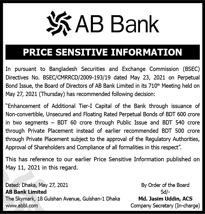 Price Sensitive Information of AB Bank Limited