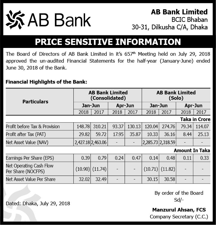 Un-audited Financial Statements of AB Bank PLC. & its Subsidiaries