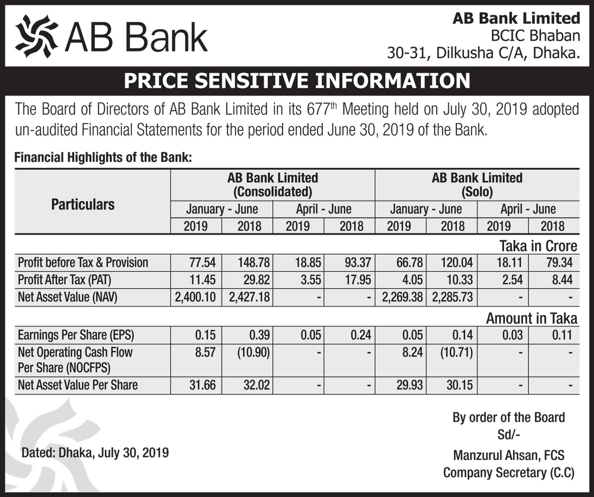 Un-audited Financial Statements of AB Bank PLC. & its Subsidiaries