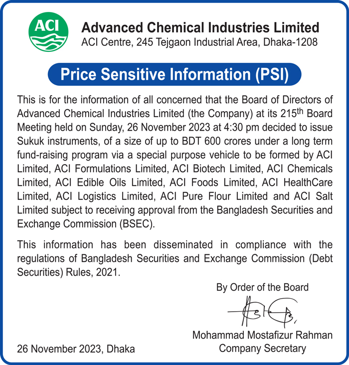 Q3 Un-audited Financial Statements of Advanced Chemical Industries PLC (ACI)