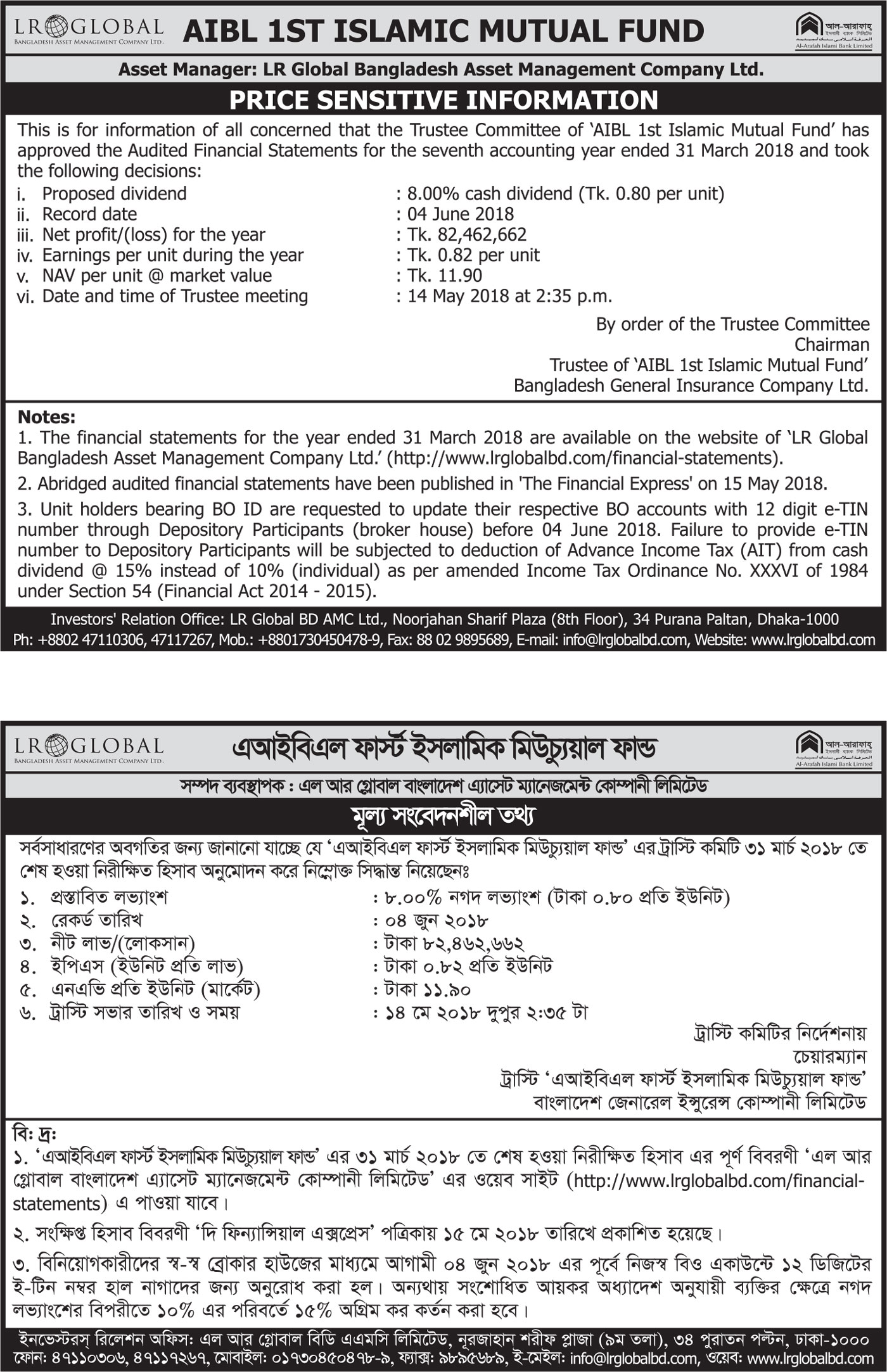 Price Sensitive Information of AIBL 1st Islamic Mutual Fund
