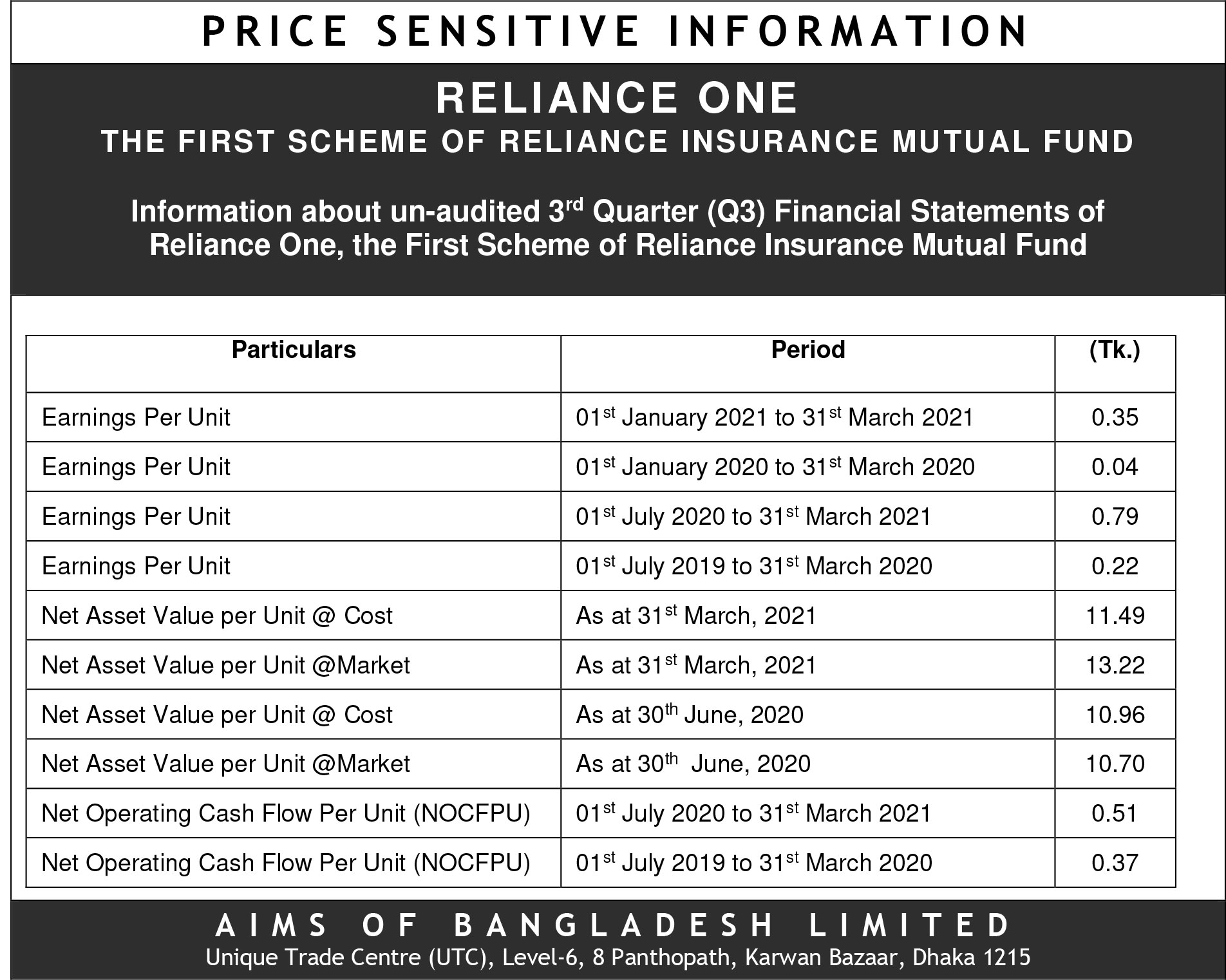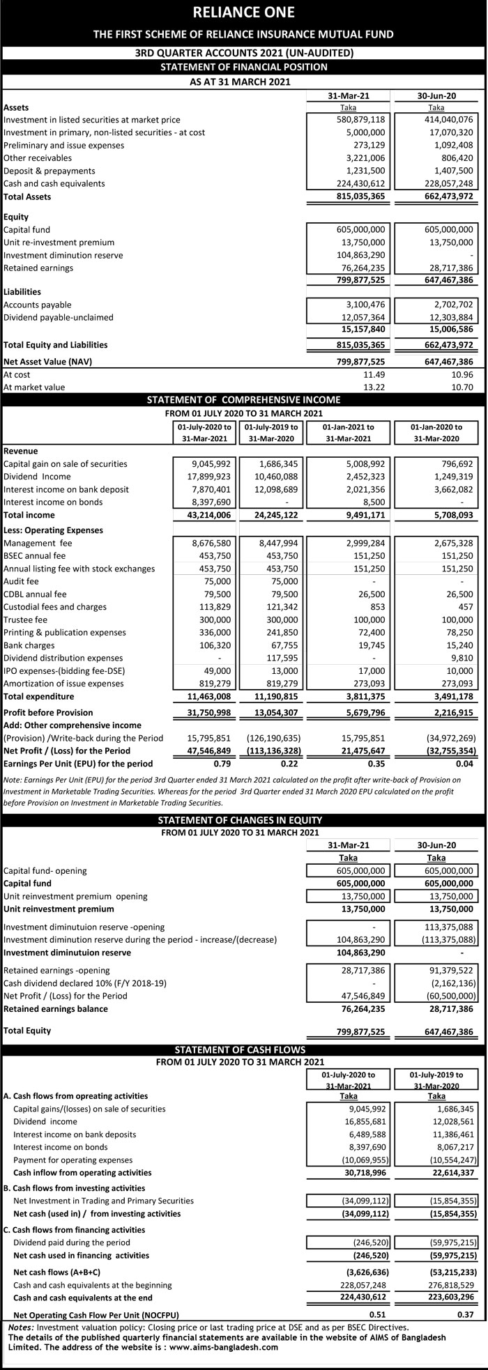 PSI & Third Quarter Financial Statements (Un-Audited) Of Reliance One