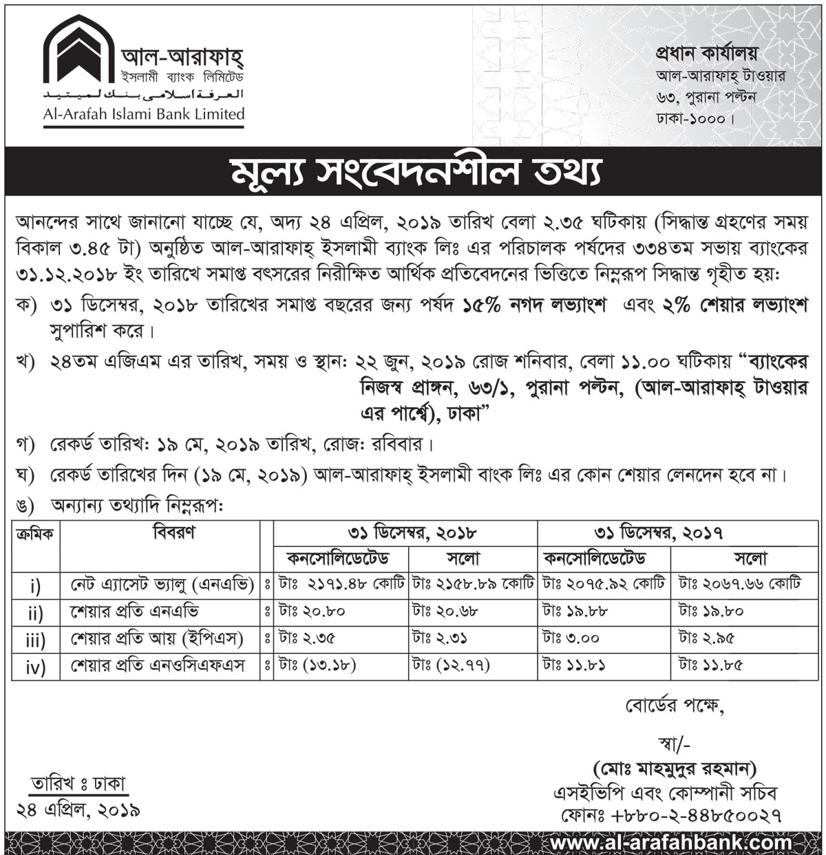 Price Sensitive Information of Al-Arafah Islami Bank Limited